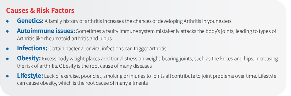 In people aged between 18–34, 8 out of 1,00,000 people have rheumatoid arthritis, and nearly 30% of osteoarthritis cases occur in people under 40. This shows that arthritis can strike at any age, and its profound impact on younger lives cannot be ignored.