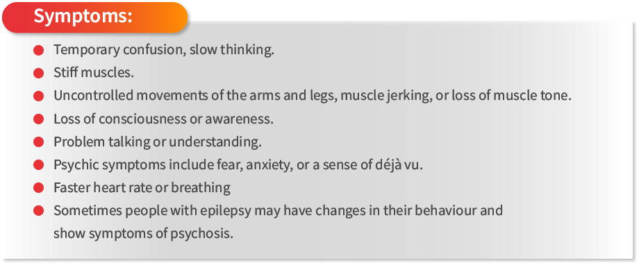 Epileptic seizures cause certain abnormal activities in the brain, resulting in the following symptoms: