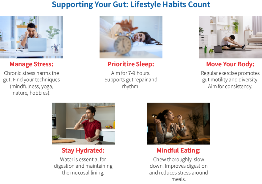 Gut health isn't just about what you eat. How you live plays a massive role. Managing stress through techniques that work for you is critical due to the strong gut-brain connection. Quality sleep allows your gut to rest and repair. Regular physical activity keeps things moving and benefits your microbes. Don't forget adequate hydration, and try slowing down and being more mindful during meals to aid digestion.
