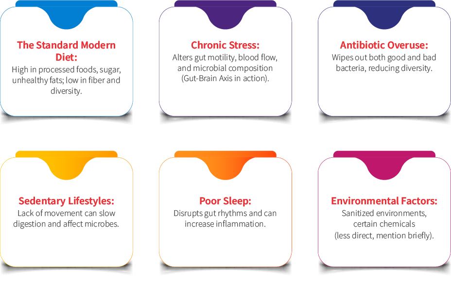 Modern lifestyle factors negatively impact our gut.