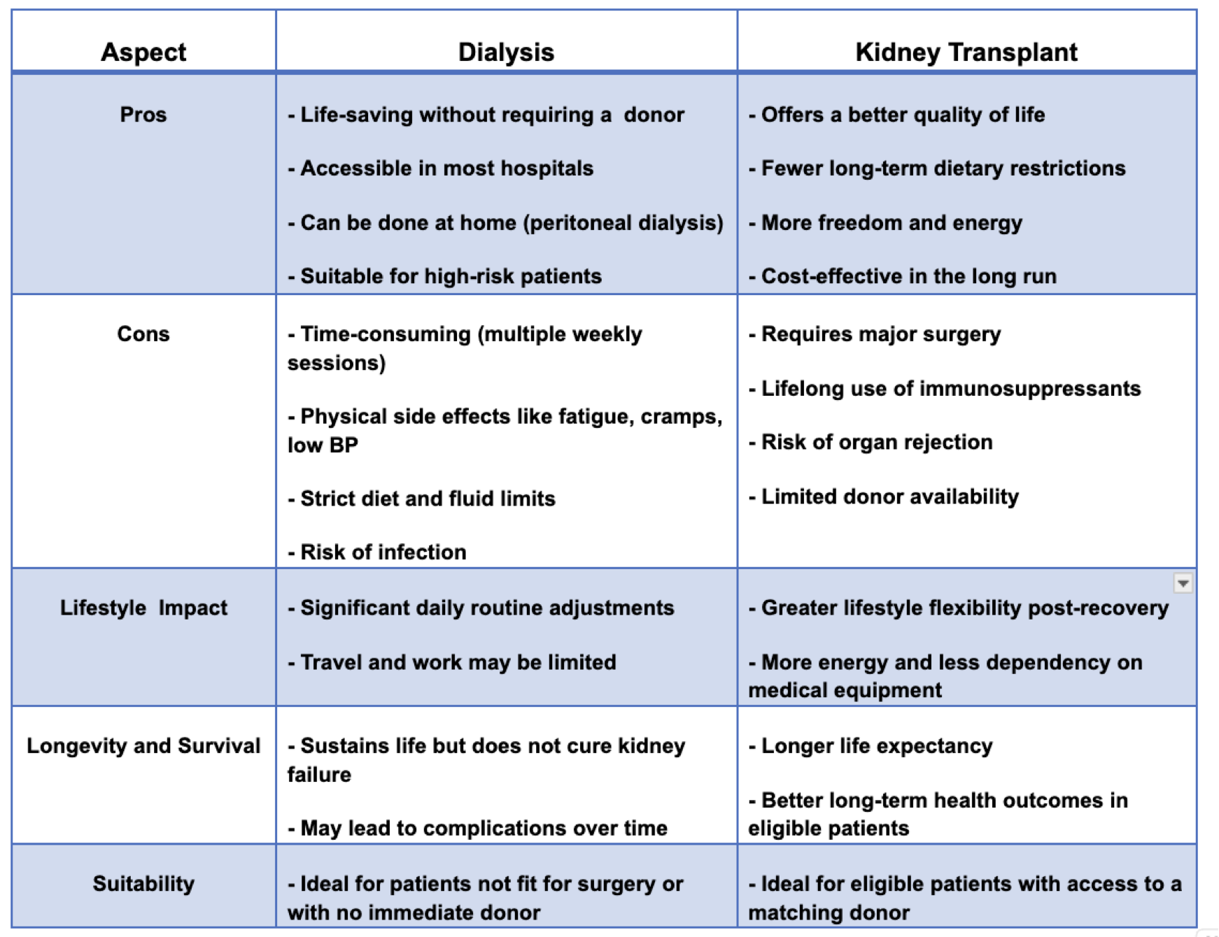 nephrologist and transplant specialist is crucial to making the best decision based on individual circumstances.