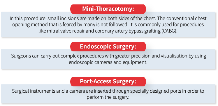Valve Replacement and Repair: Repairs or replacements of malfunctioning heart valves are done with smaller incisions. This reduces trauma and speeds up recovery.