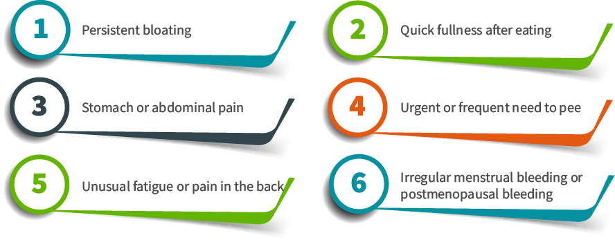 The symptoms of ovarian cancer are usually similar to common digestive or menstrual complaints, so it is easy to ignore them. But if you find any of the following signs recurring frequently (more than 12 times a month), you should consult your physician: